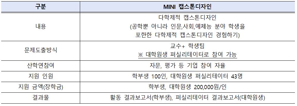 6. 선정 방법 및 절차: (붙임)캡스톤디자인(MINI) 지원사업 운영 안내 참고